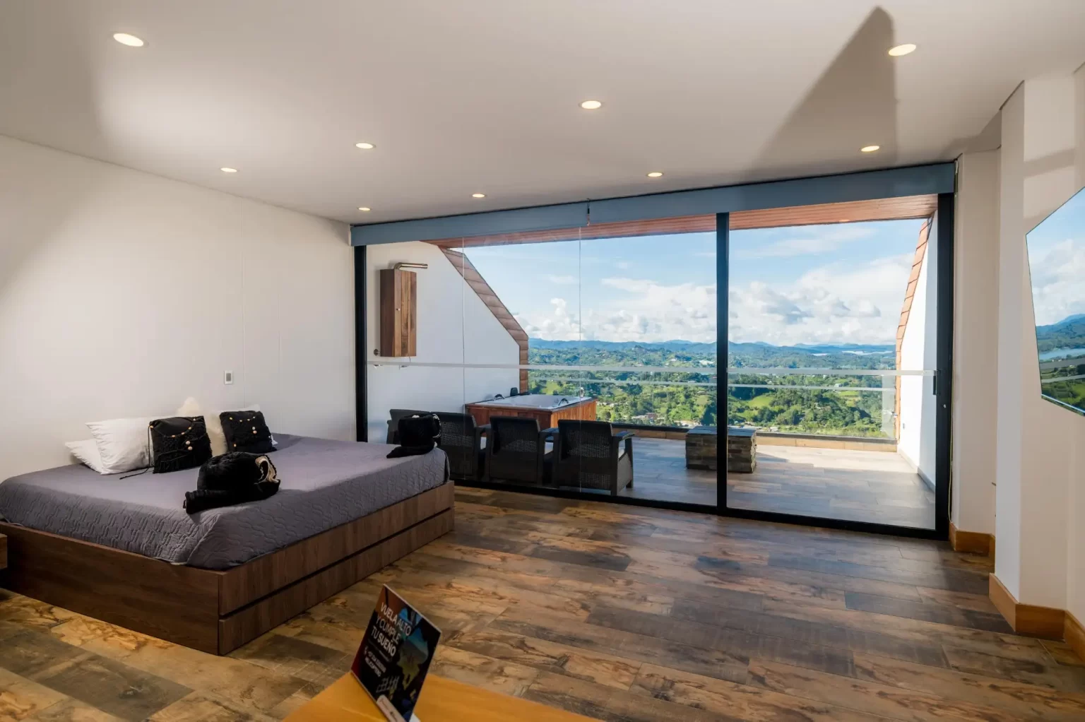 Nuestras suites combinan arquitectura moderna, comodidad y vistas privilegiadas a la represa del Peñol, creando el escenario perfecto para una escapada inolvidable, un plan romántico o un momento de desconexión total.